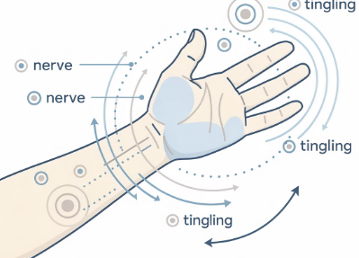 손끝 감각이 둔해지거나 물건을 잡는 느낌이 이상해질 수 있습니다.