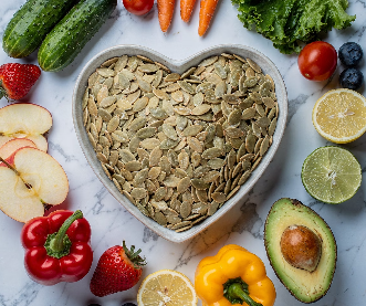 호박씨는 단백질, 불포화지방산, 아연, 마그네슘이 풍부한 영양 밀도 높은 식품입니다.