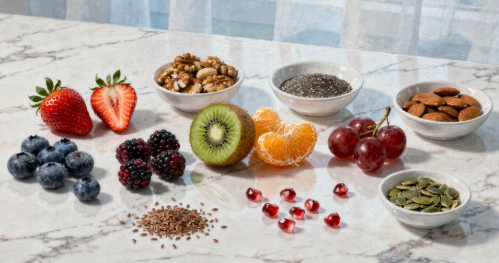 항산화 성분은 피부 세포 보호에 기여할 수 있으며, 건강한 피부 유지에 도움을 줄 수 있습니다.